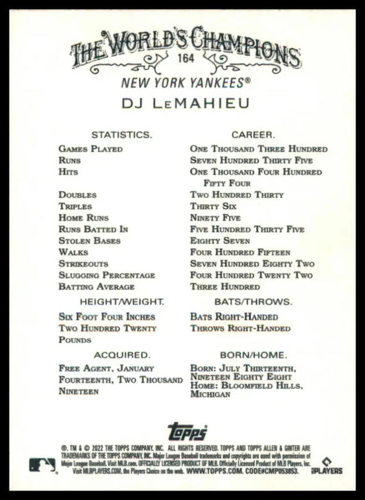 DJ LeMahieu 2022 Topps Allen & Ginter Chrome #164 New York Yankees