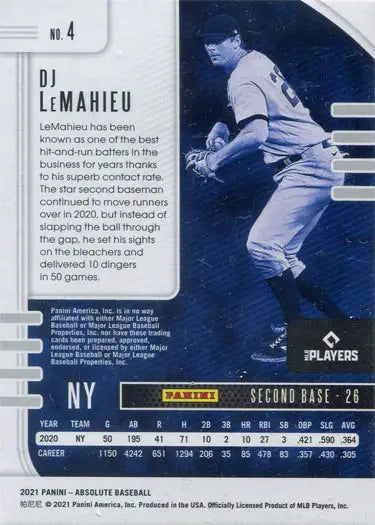 Panini Absolute Baseball 2021 Spectrum Blue Parallel Card 4 DJ LeMahieu /149