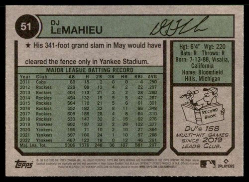 DJ LeMahieu 2023 Topps #658 New York Yankees
