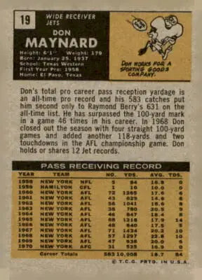 The Don Maynard Football Cards collection is your gateway to premium memorabilia and collectibles that celebrate the legacy of Don Maynard Football Cards. With options spanning vintage classics to modern releases, it's ideal for fans and collectors alike.