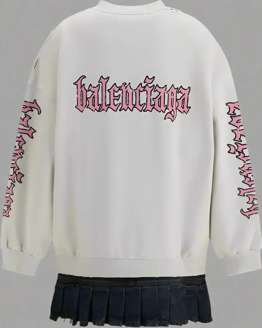 BALENCIAGA pink white Sweatshirt Dress with logo