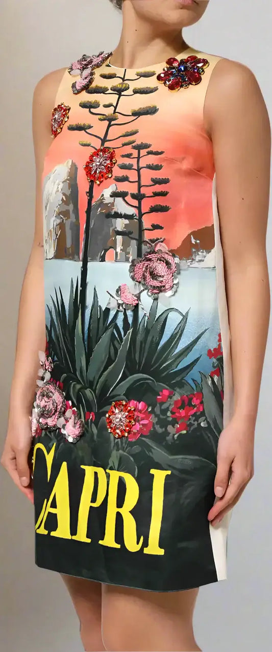 Dolce & Gabbana Multicolor Crystal Embellished A-line Mini Dress