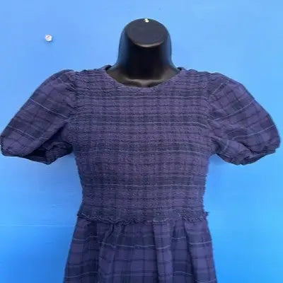 Free Assembly Girls Plaid Dress XL Purple Black Elastic Front Schoolwear