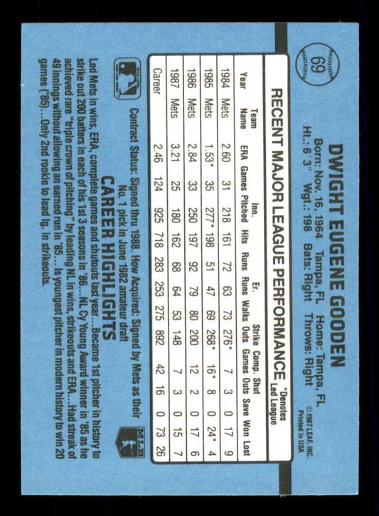 1988 Donruss #69 Dwight Gooden EX New York Mets Baseball Card