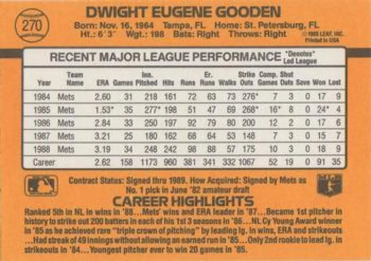1989 Donruss #270 Dwight Gooden NM-MT New York Mets Baseball Card