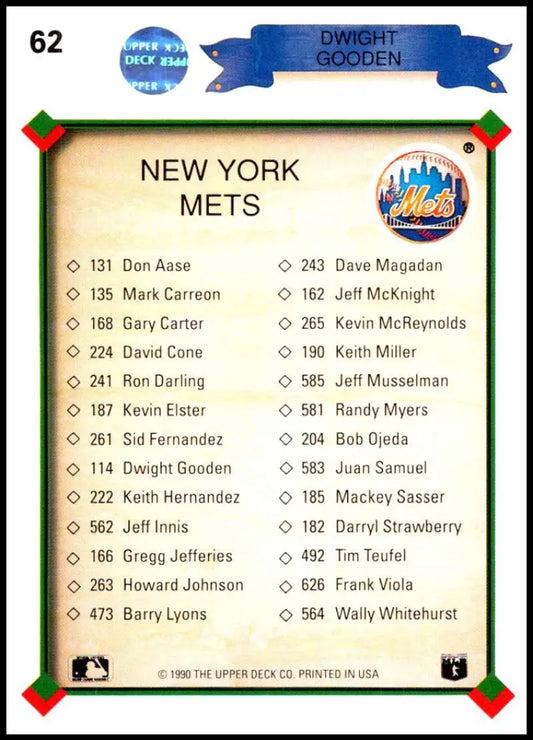 1990 Upper Deck #62 Dwight Gooden TC NM-MT New York Mets Baseball Card