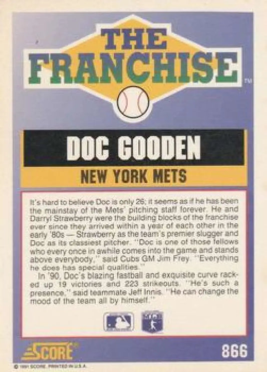 1991 Score #866 Dwight Gooden FRAN NM-MT New York Mets Baseball Card