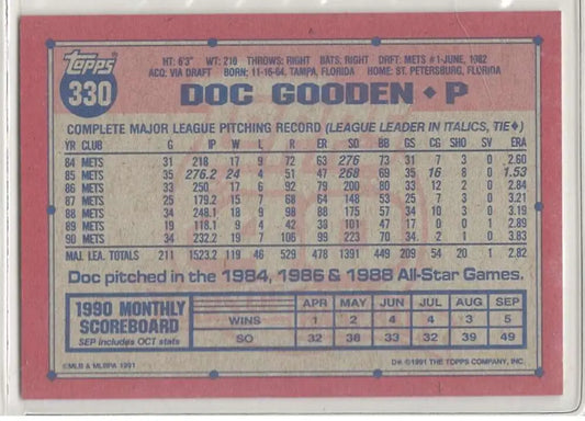 1991 Topps #330 Dwight Gooden NM-MT New York Mets Baseball Card