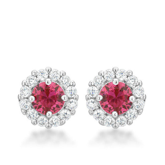 Rhodium Plated Ruby Red Petite Royal Oval Earrings