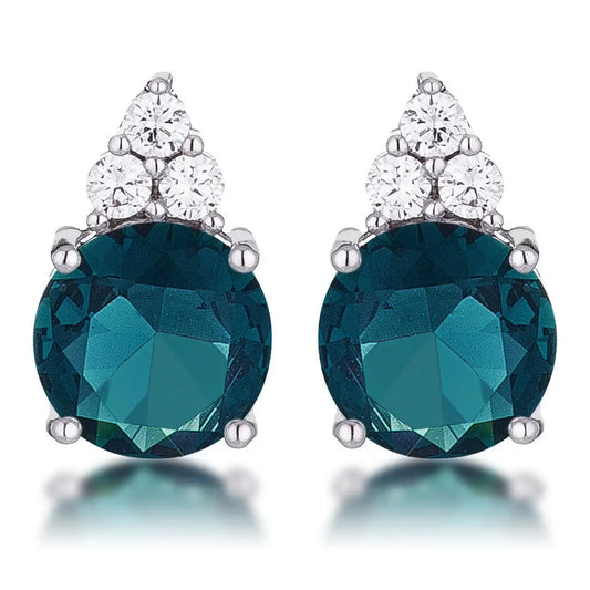 Simple Rhodium Plated 9mm Blue Green CZ Stud Earring