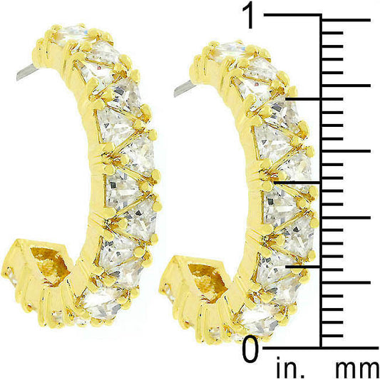 Trillion Cut Cubic Zirconia Hoop Earrings Goldtone Finish