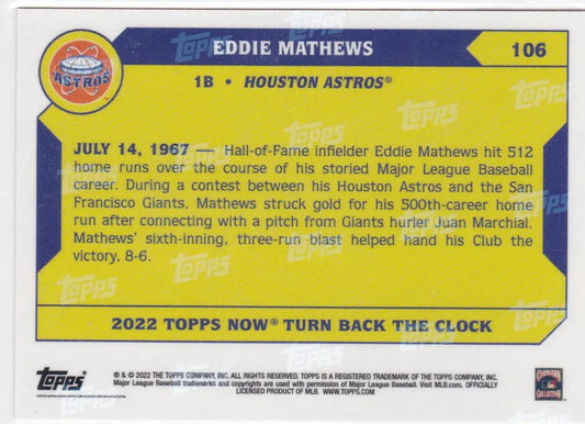 2022 TURN BACK THE CLOCK #106 EDDIE MATHEWS- HOUSTON ASTROS