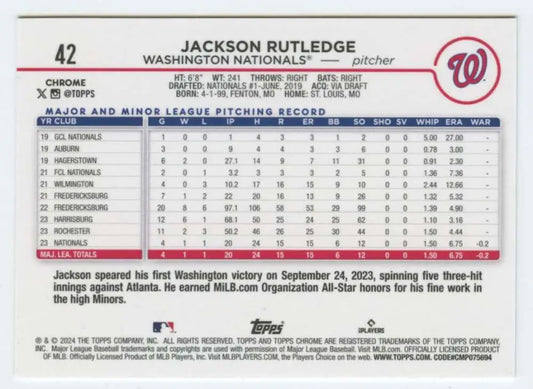 2024 Topps Chrome #42 Jackson Rutledge NM-MT RC Rookie Washington Nationals Baseball Card