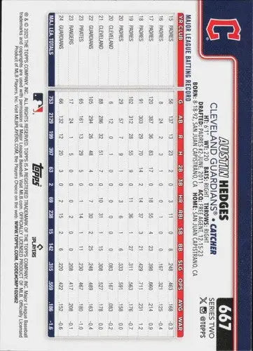 2025 Topps #667 Austin Hedges NM-MT Guardians ID:78484