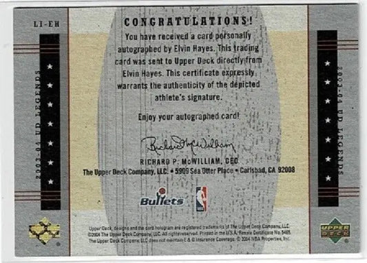 2003-04 UD Legends ELVIN HAYES #LI-EH Auto Inscriptions The Big E #93/100