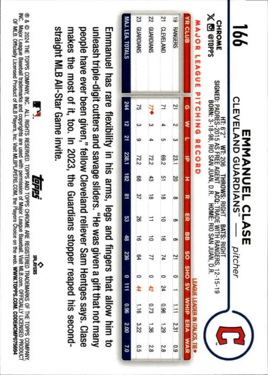 2024 Topps Chrome #166 Emmanuel Clase NM-MT Cleveland Guardians Baseball Card