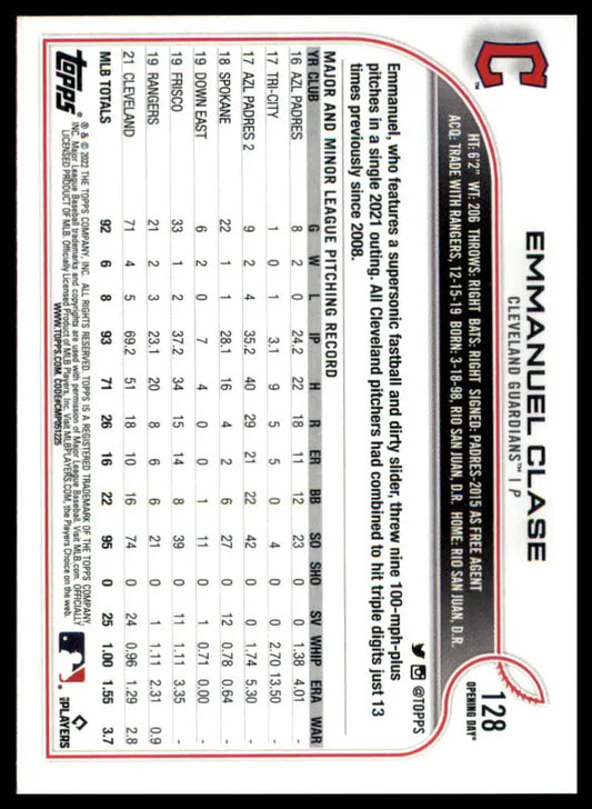 Emmanuel Clase 2022 Topps Opening Day #128 Cleveland Guardians