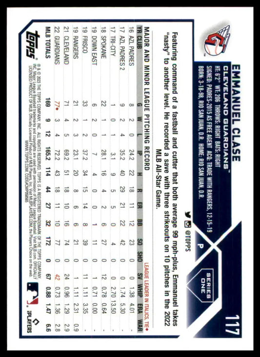Emmanuel Clase 2023 Topps #117 Cleveland Guardians