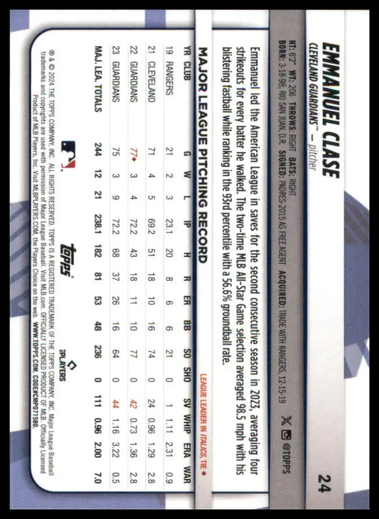 Emmanuel Clase 2024 Topps Big League #24 Cleveland Guardians