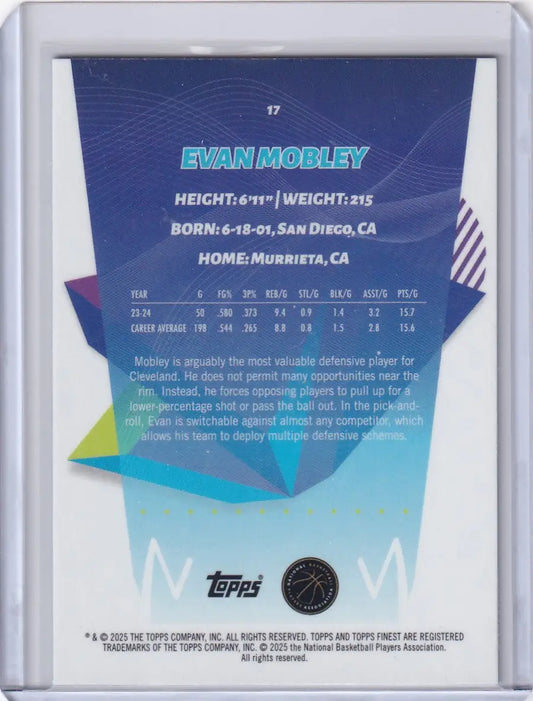 2024-25 Finest Basketball Sky Blue #17 Evan Mobley - Cleveland Cavilers