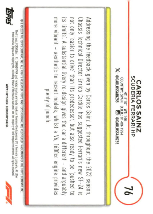 2024 Topps Chrome Formula 1 #76 Carlos Sainz NM-MT Scuderia Ferrari HP Racing Card