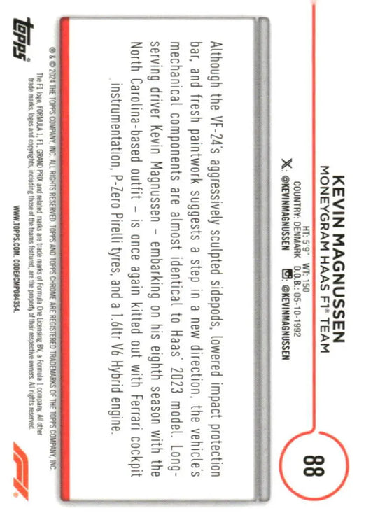 2024 Topps Chrome Formula 1 #88 Kevin Magnussen NM-MT MoneyGram Haas F1 Team Racing Card