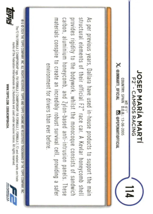 2024 Topps Chrome Formula 1 #114 Josep Maria Marti NM-MT F2 - Campos Racing Racing Card