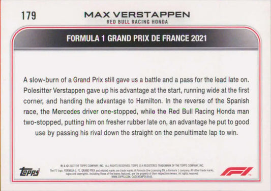 2022 Topps Formula 1 #179 Max Verstappen NM-MT Racing Card