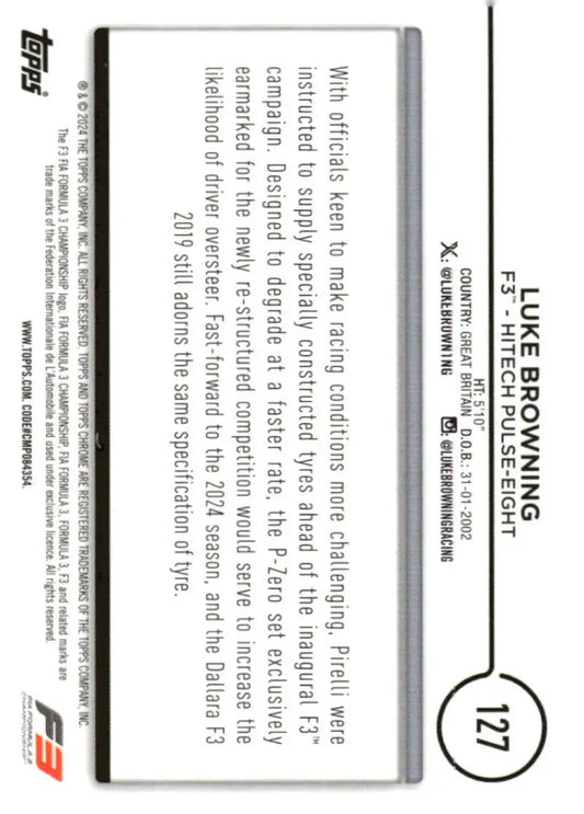 2024 Topps Chrome Formula 1 #127 Luke Browning NM-MT F3 - Hitech Pulse-Eight Racing Card