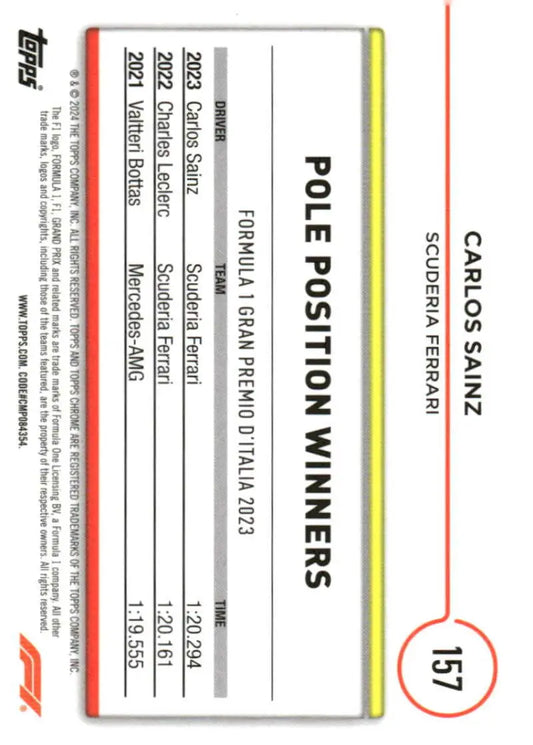 2024 Topps Chrome Formula 1 #157 Carlos Sainz NM-MT Scuderia Ferrari HP Racing Card
