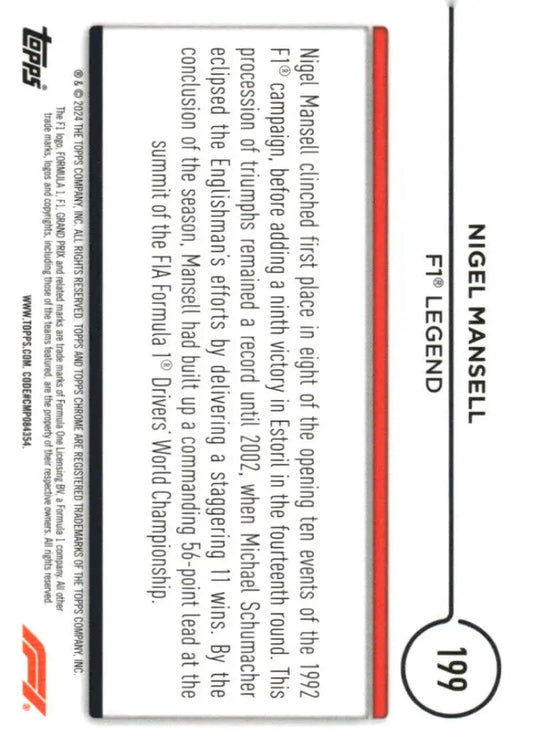 2024 Topps Chrome Formula 1 #199 Nigel Mansell NM-MT Legend Racing Card