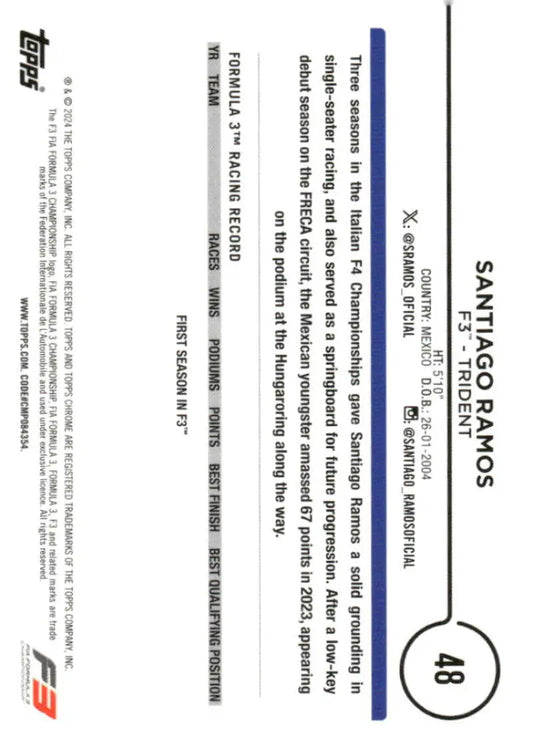2024 Topps Chrome Formula 1 #48 Santiago Ramos NM-MT F3 - Trident Racing Card