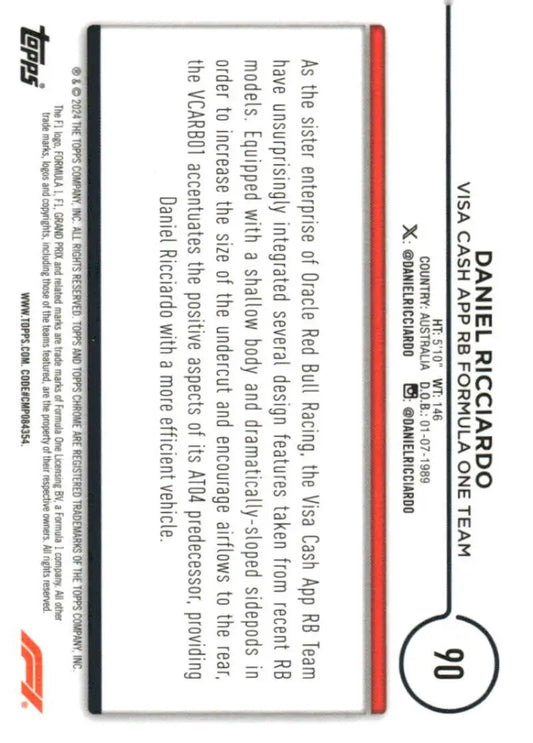 2024 Topps Chrome Formula 1 #90 Daniel Ricciardo NM-MT Visa Cash App RB Formula One Team Racing Card