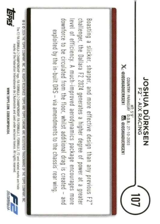 2024 Topps Chrome Formula 1 #107 Joshua Durksen NM-MT F2 - AIX Racing Racing Card