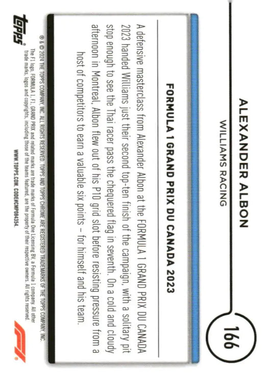 2024 Topps Chrome Formula 1 #166 Alexander Albon NM-MT Williams Racing Racing Card