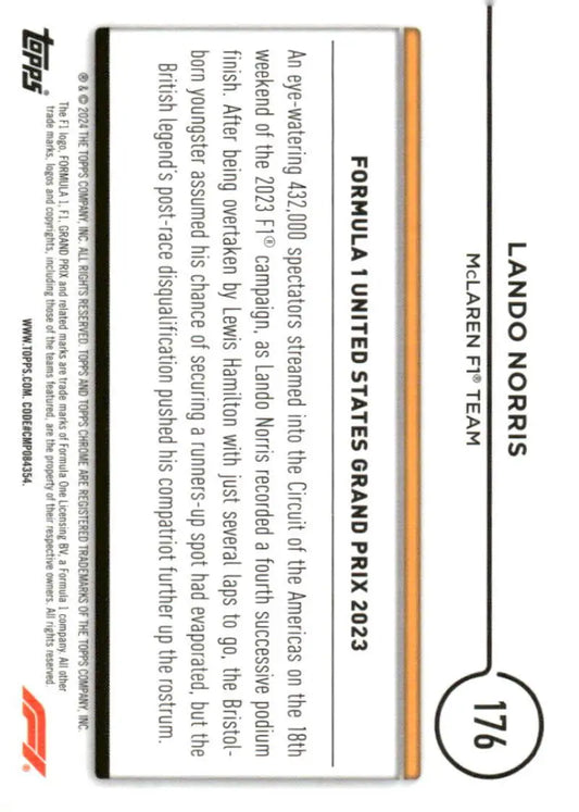 2024 Topps Chrome Formula 1 #176 Lando Norris NM-MT McLaren F1 Team Racing Card