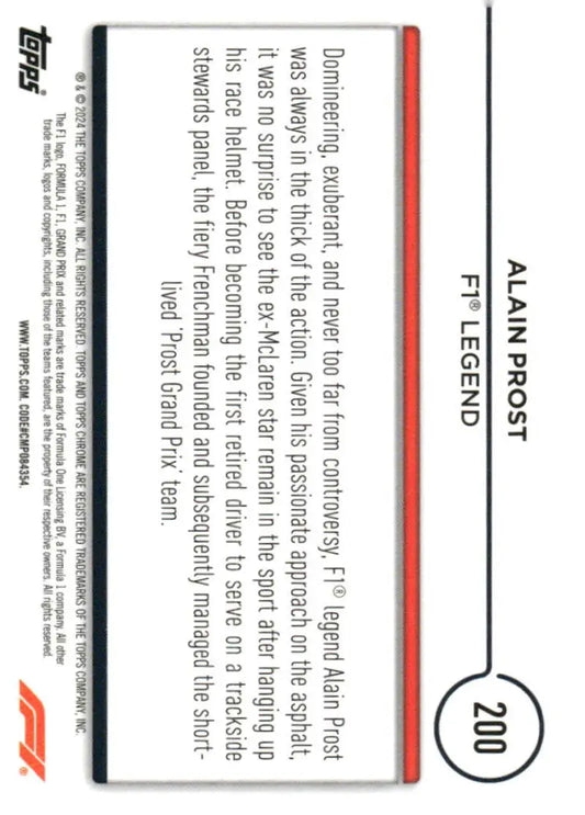 2024 Topps Chrome Formula 1 #200 Alain Prost NM-MT Legend Racing Card