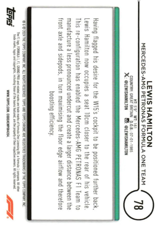 2024 Topps Chrome Formula 1 #78 Lewis Hamilton NM-MT Mercedes-AMG Petronas Formula One Team Racing Card