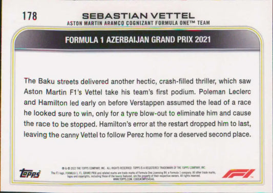 2022 Topps Formula 1 #178 Sebastian Vettel NM-MT Racing Card