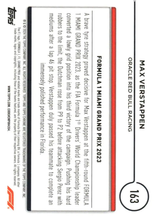 2024 Topps Chrome Formula 1 #163 Max Verstappen NM-MT Oracle Red Bull Racing Racing Card