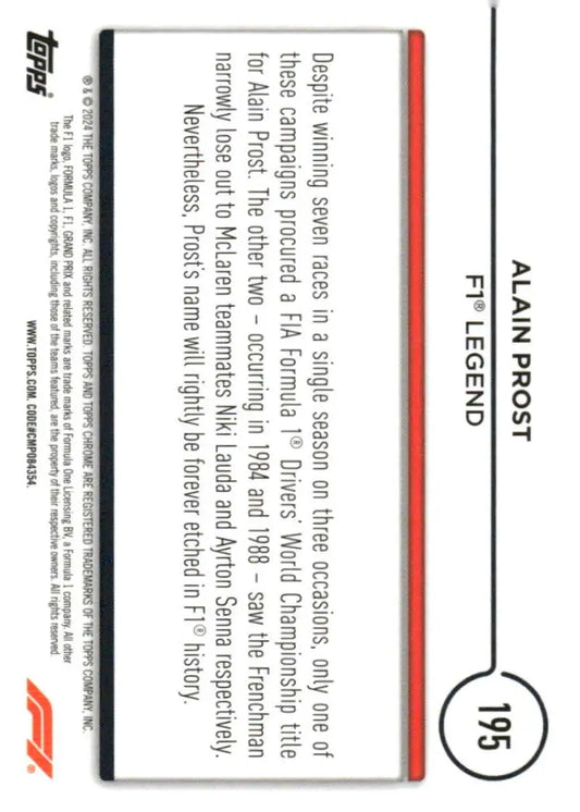 2024 Topps Chrome Formula 1 #195 Alain Prost NM-MT Legend Racing Card