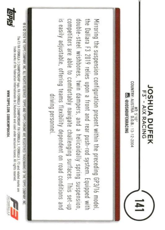2024 Topps Chrome Formula 1 #141 Joshua Dufek NM-MT F3 - AIX Racing Racing Card