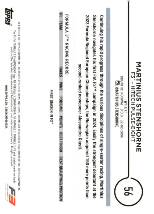 2024 Topps Chrome Formula 1 #56 Martinius Stenshorne NM-MT F3 - Hitech Pulse-Eight Racing Card