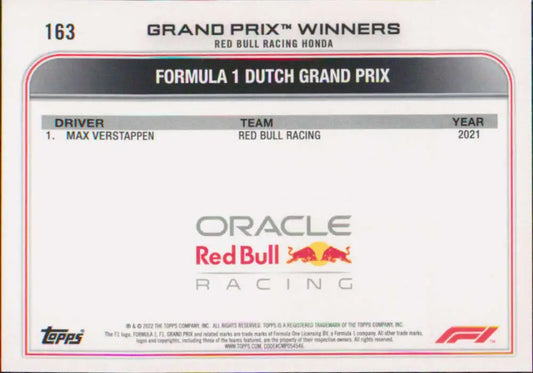 2022 Topps Formula 1 #163 Max Verstappen NM-MT Racing Card