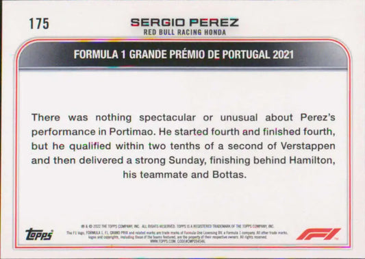 2022 Topps Formula 1 #175 Sergio Perez NM-MT Racing Card