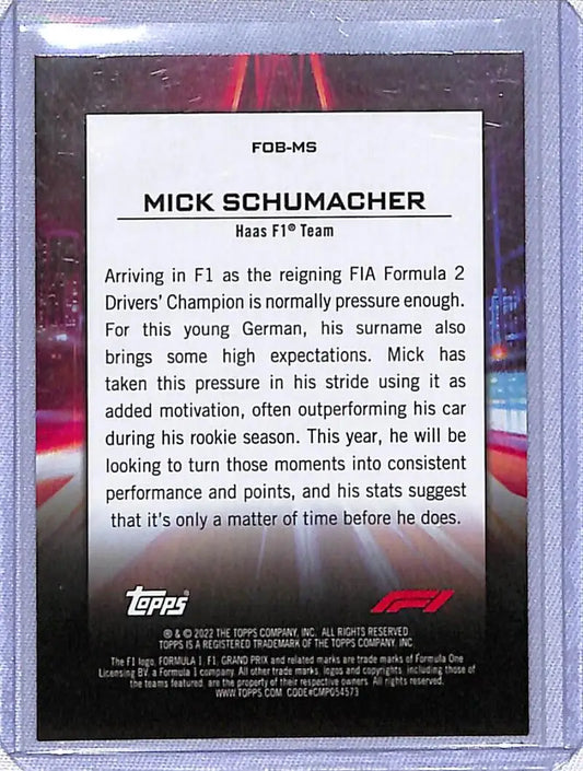 2022 Topps Formula 1 #FOB-MS Mick Schumacher NM-MT Haas