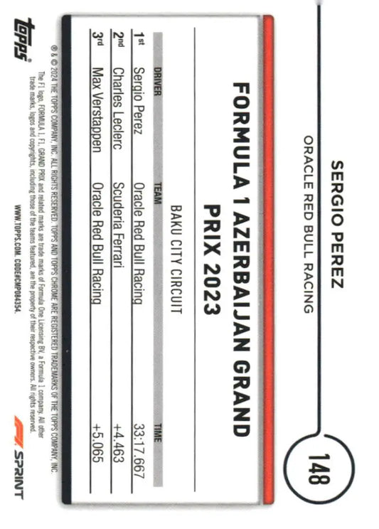 2024 Topps Chrome Formula 1 #148 Sergio Perez NM-MT Oracle Red Bull Racing Racing Card