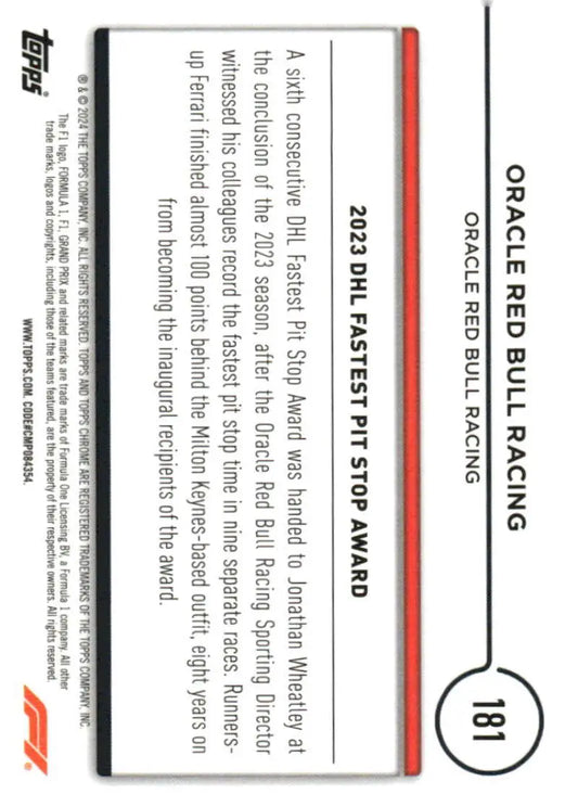 2024 Topps Chrome Formula 1 #181 Oracle Red Bull Racing NM-MT Oracle Red Bull Racing Racing Card