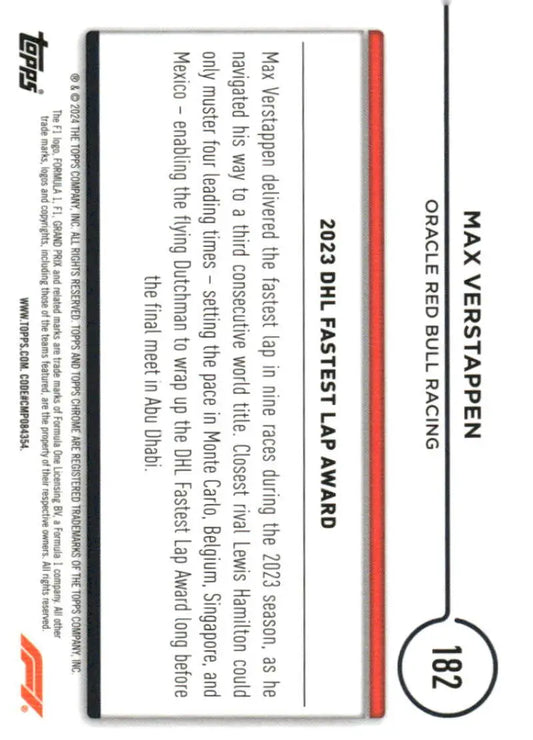 2024 Topps Chrome Formula 1 #182 Max Verstappen NM-MT Oracle Red Bull Racing Racing Card