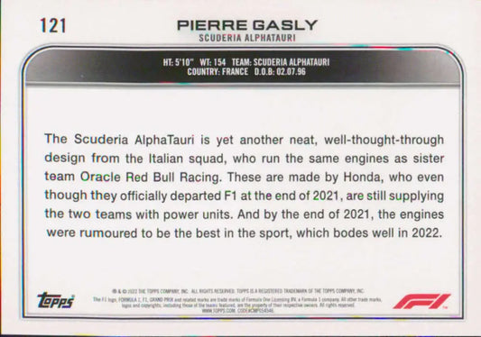 2022 Topps Formula 1 #121 Pierre Gasly NM-MT Racing Card